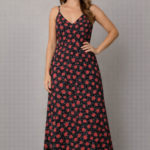 Hermoso vestido en algodón de fondo negro con flores pequeñas