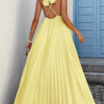 VESTIDO LARGO AMARILLO CON TIRAS FLORALES